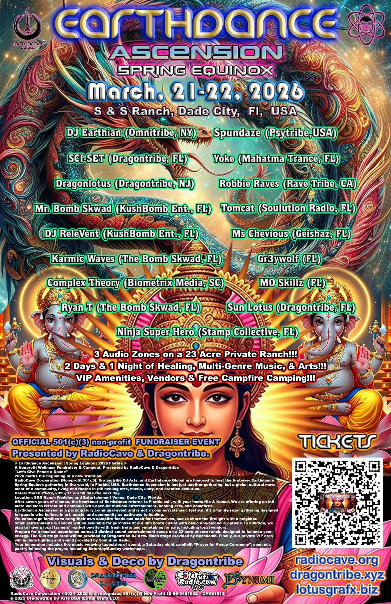 RadioCave Corporation (Non-profit 501c3), Dragontribe DJ Arts, and Earthdance Global are honored to host the first-ever Earthdance Spring Equinox gathering in the world, in Florida, USA. Earthdance Ascension is not just another gathering, but a global cultural movement of a community, living and rooted in the healing arts, music, unity, and creative evolution.