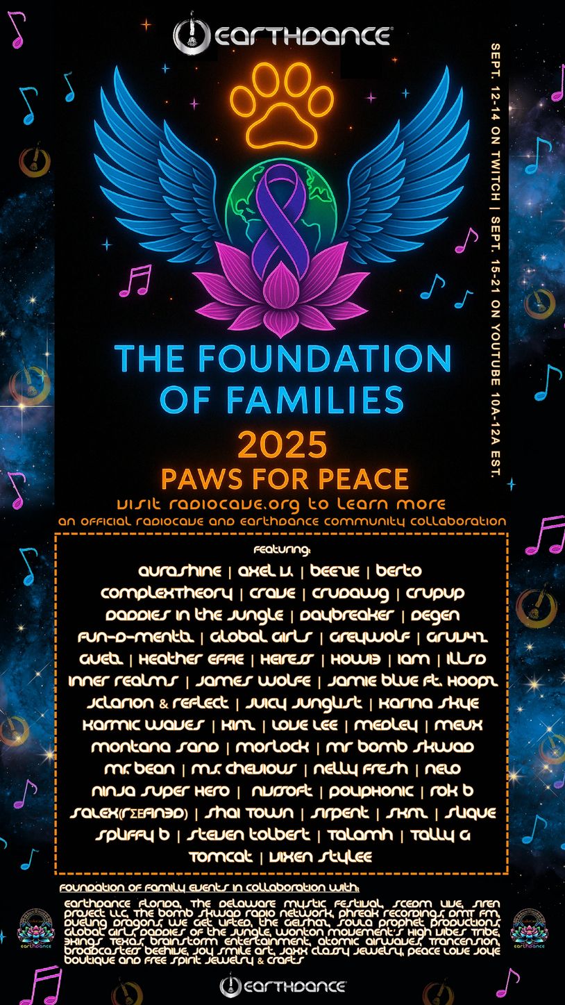 "RadioCave," "Foundation of Families," "Where2Groove", "The Dragonz Mind" & "The Infinity Forge" are all trademarks of RadioCave Corporation. Any unauthorized use of these names, logos, or brands is prohibited. 2021-2025©